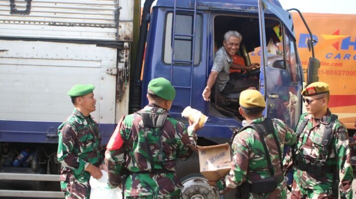 Jumat Penuh Kepedulian di Ketapang: Aksi Sunyi Prajurit Kodim 0825 Banyuwangi Menghangatkan Hati Sopir Truk dengan Berbagi Makanan dan Minuman
