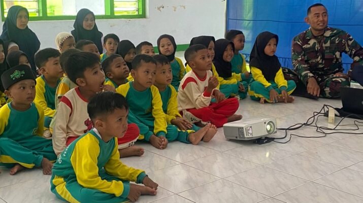 Lebakharjo – Suasana ceria tampak di halaman RA Raudlotul Athfal Desa Lebakharjo saat anak-anak mengikuti kegiatan pengenalan rambu-rambu lalu lintas, Senin (20/10/2025). Kegiatan edukatif ini merupakan bagian dari program non-fisik TNI Manunggal Membangun Desa (TMMD) ke-126 Kodim 0818/Malang-Batu, yang berkolaborasi dengan Dinas Perhubungan Kabupaten Malang.