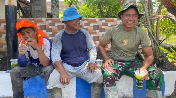 Senyum dan canda tawa menghiasi waktu istirahat mereka. Para anggota Satgas TMMD terlihat menikmati kebersamaan tersebut sebagai bentuk penghargaan atas kerja keras bersama membangun desa. Es yang sederhana terasa begitu istimewa ketika diminum di tengah semangat gotong royong yang tinggi.