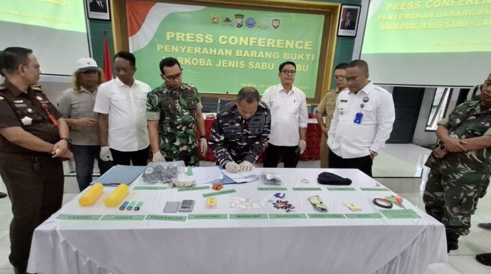 Penemuan ini diumumkan dalam press conference di Aula Panglima Sudirman Makodim 0825, Senin (8/9/2025). Komandan Kodim 0825/Banyuwangi, Letkol Arh Joko Sukoyo, S.Sos., M.Han., memimpin langsung kegiatan dan secara resmi menyerahkan barang bukti kepada Kasat Narkoba Polresta Banyuwangi, Kompol Nanang Sugiyono, S.H., M.H. Acara tersebut turut dihadiri pejabat BNNK Banyuwangi, Kejaksaan Negeri, unsur TNI-AL, serta perwakilan pemerintah daerah.