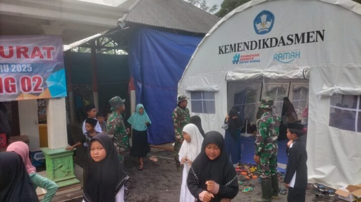 TNI Tetap Hadir: Monitoring Belajar Siswa Korban Erupsi Semeru di Tenda Darurat
