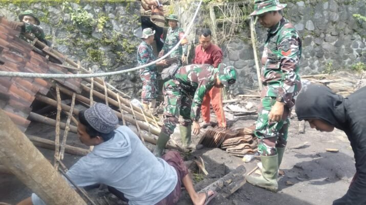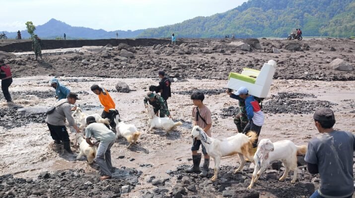 Lumajang — Upaya pemulihan pasca banjir lahar dingin Gunung Semeru terus dilakukan oleh jajaran Kodim 0821/Lumajang. Serda Didik, bersama enam personel lainnya, terjun langsung