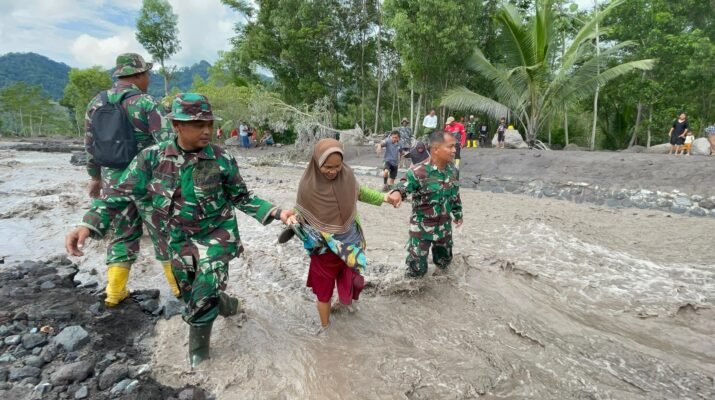 Bahu-Membahu dengan Warga, Personel Kodim Lumajang Ringankan Dampak Lahar Dingin Semeru