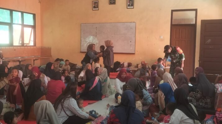 Babinsa Supiturang Dampingi Tenaga Medis Layani Pemeriksaan Kesehatan Lansia dan Anak-Anak di Pos Pengungsian Pronojiwo.