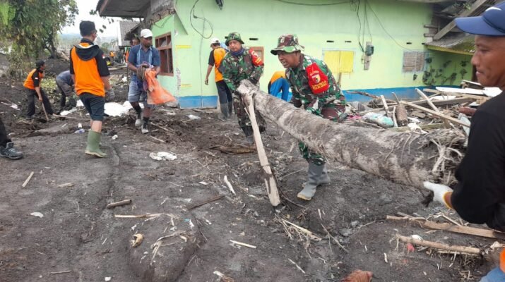 Lumajang — Upaya penanggulangan dampak erupsi Gunung Semeru di Kecamatan Pronojiwo kembali digencarkan. Personel Kodim 0821/Lumajang bergerak cepat membantu warga yang terdampak, dengan melaksanakan