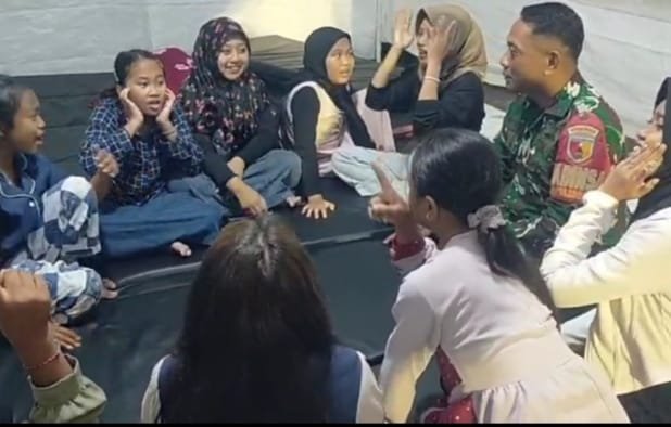 Lumajang — Di tengah situasi darurat pasca-erupsi Gunung Semeru, suasana pengungsian sering kali dipenuhi rasa cemas dan kelelahan. Namun pada Jumat malam (28/11/2025), keceriaan