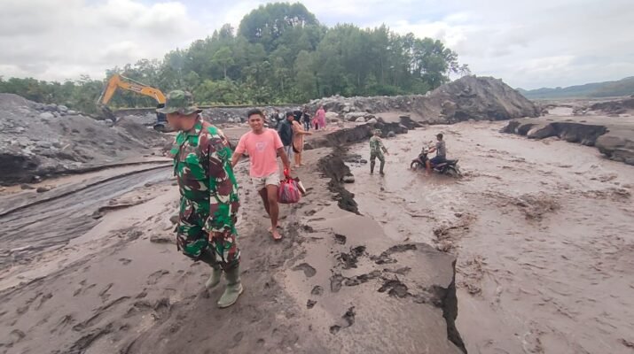 Lumajang – Kepedulian TNI terhadap keselamatan masyarakat kembali terlihat di wilayah terdampak erupsi Gunung Semeru. Bati Tuud Koramil 0821-15/Tekung, Pelda Rudi Rusmianto, bersama empat