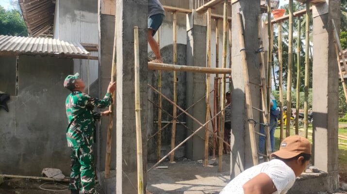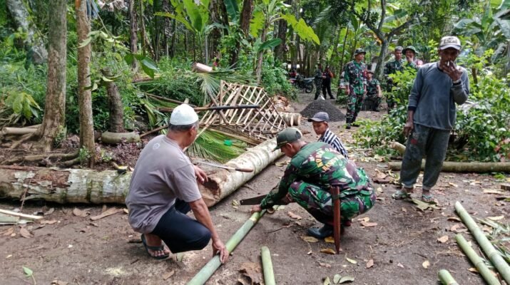 Banyuwangi – Babinsa Desa Temuguruh Koramil 0825/19 Sempu, Sertu Wintoro, melaksanakan kegiatan Karya Bakti bersama masyarakat di Dusun Krajan Wetan, Desa Temuguruh, Kecamatan Sempu,