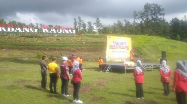 Sempu, 1 November 2025 — Kegiatan Road Show Senam Kreasi Perwosi 2020 berlangsung meriah di kawasan Wisata Gerbang Raung, Desa Jambewangi, Kecamatan Sempu, Kabupaten