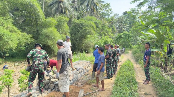 Satgas TMMD ke-126 dan TNI AU Laksanakan Pemasangan Bronjong di Sungai Sengkaring Lebakharjo