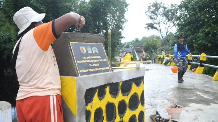 BANYUWANGI – Anggota TNI yang tergabung dalam TNI Manunggal Membangun Desa (TMMD) telah menyelesaikan pengerjaan jembatan di Desa Silirsari dengan tahapan akhir berupa pengecatan