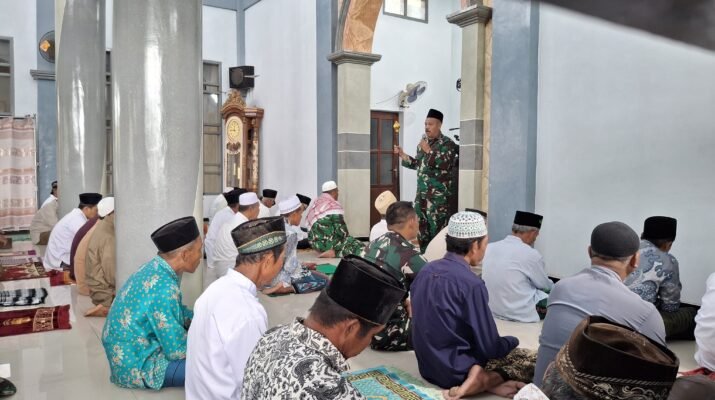 BANYUWANGI – Suasana religius terasa di Masjid wilayah Kecamatan Siliragung, Kabupaten Banyuwangi, saat Anggota Bintal Satgas TMMD ke-125 Kodim 0825/Banyuwangi bertugas sebagai khatib Shalat