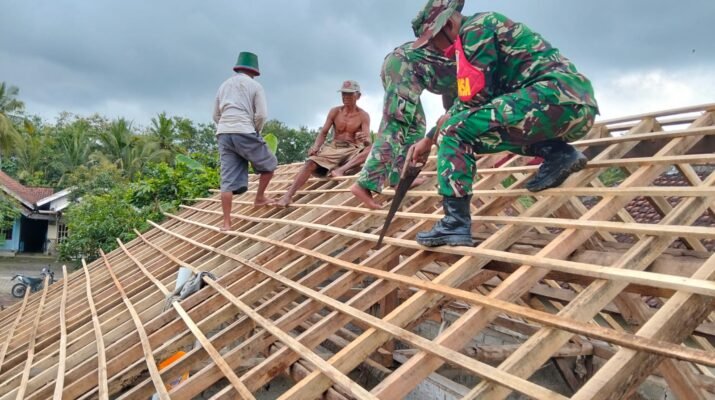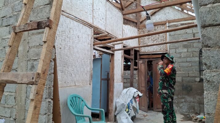Banyuwangi – Komandan Kodim 0825/Banyuwangi, Letkol Arh Joko Sukoyo, S.Sos., M.Han., meninjau langsung progres pengerjaan Rumah Tidak Layak Huni (Rutilahu) dalam rangka Program TNI
