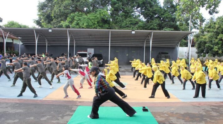 BANYUWANGI – Suasana ceria memenuhi Lapangan Hitam Makodim 0825 Banyuwangi di Jalan RA Kartini No. 02 Kepatihan pada Selasa (18/11/2025) saat Persit Kartika Chandra Kirana Cabang XXXIX melaksanakan kegiatan senam bersama. Kegiatan ini digelar sebagai upaya menjaga kebugaran jasmani sekaligus mempererat ikatan kekeluargaan di lingkungan Persit. Para peserta terlihat antusias mengikuti setiap gerakan senam yang dipandu instruktur.