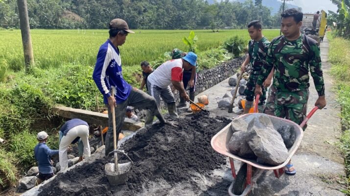 Gotong royong antara TNI dan masyarakat menjadi kunci percepatan pekerjaan. Warga turut serta membantu mengangkut material dan merapikan area sekitar pembangunan.