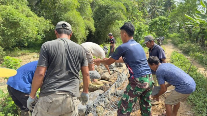Sinergi antara dua matra TNI ini menjadi wujud nyata semangat gotong royong dan kebersamaan dalam membangun desa. Prajurit TNI bersama warga bahu-membahu mengangkut material, memasang batu, dan melakukan pengecoran dinding saluran irigasi di tengah kondisi cuaca yang cukup fluktuatif.