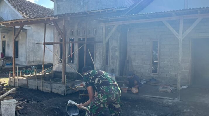 BANYUWANGI – Satgas TNI Manunggal Membangun Desa (TMMD) ke-125 Kodim 0825 Banyuwangi terus mempercepat pengerjaan Rumah Tidak Layak Huni (RTLH) milik Ibu Evi di