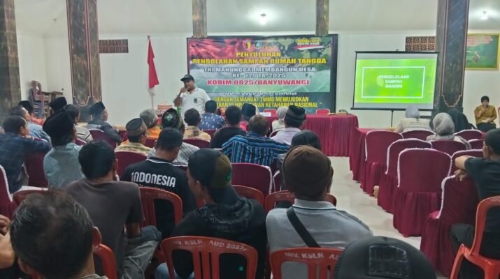 BANYUWANGI – Satgas TNI Manunggal Membangun Desa (TMMD) Ke-125 Kodim 0825/Banyuwangi melaksanakan kegiatan penyuluhan pengolahan sampah rumah tangga di Desa Kesilir, Kecamatan Siliragung, Kabupaten