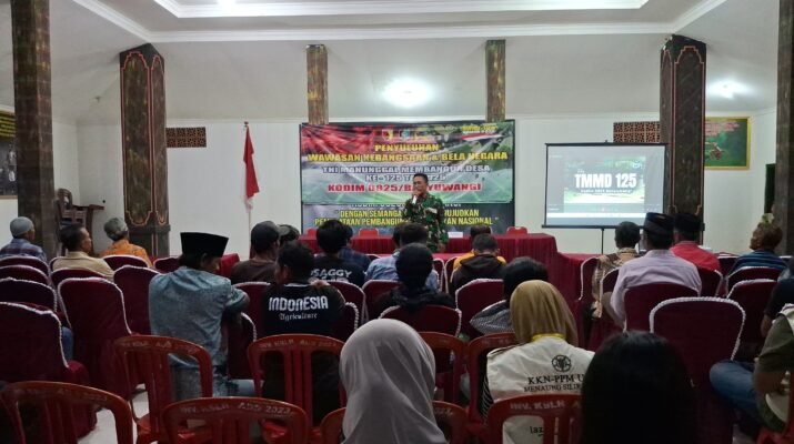 BANYUWANGI – Satgas TNI Manunggal Membangun Desa (TMMD) ke-125 Kodim 0825/Banyuwangi melaksanakan kegiatan penyuluhan Wawasan Kebangsaan (Wasbang) di Desa Kesilir, Kecamatan Siliragung, Kabupaten Banyuwangi,